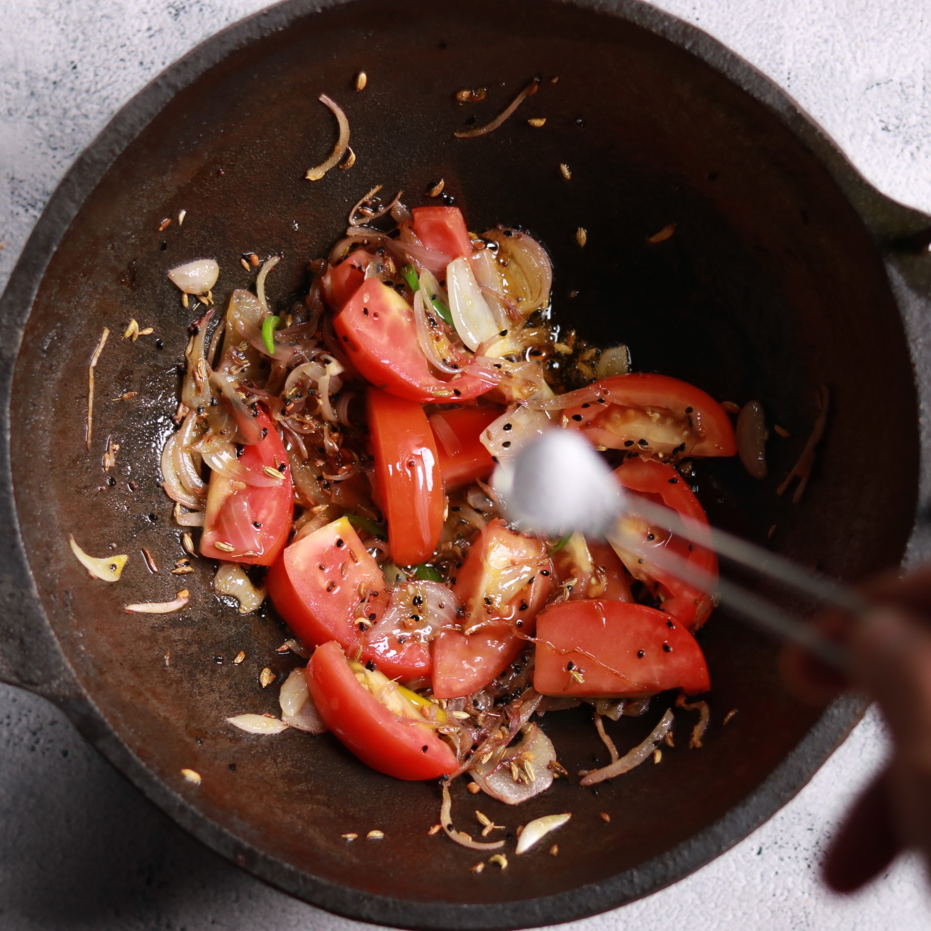 The onion-cooking stage requires patience. They should be golden brown, not just softened, because this caramelization adds sweetness that balances the spices. Similarly, the tomatoes need to be cooked until they’re completely broken down and jammy, which usually takes 5-7 minutes of consistent cooking.