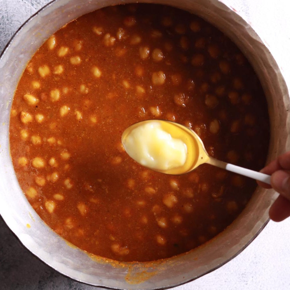 - For extra richness, mash a few chickpeas against the side of the pan while cooking
