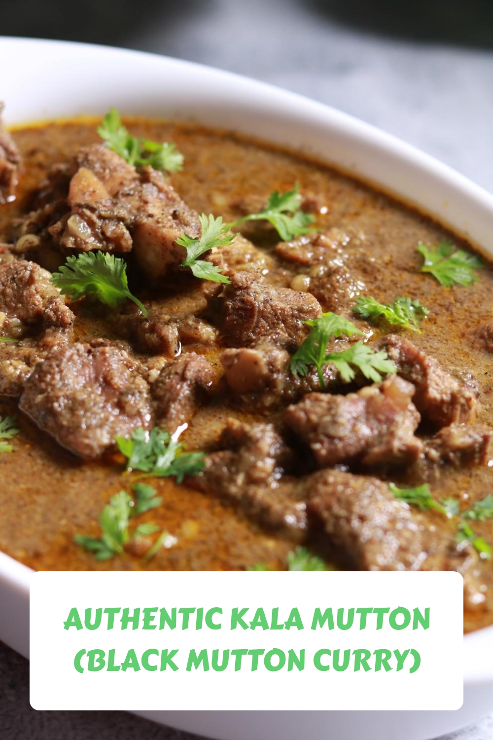 Pressure cook 20 minutes (or pot-simmer 45-60 till tender). Release steam naturally. Gravy should be thick, dark brown-black, glossy. Simmer uncovered if thin. Garnish coriander. Purpose of bone-in mutton? Rich stock that bodies the sauce.